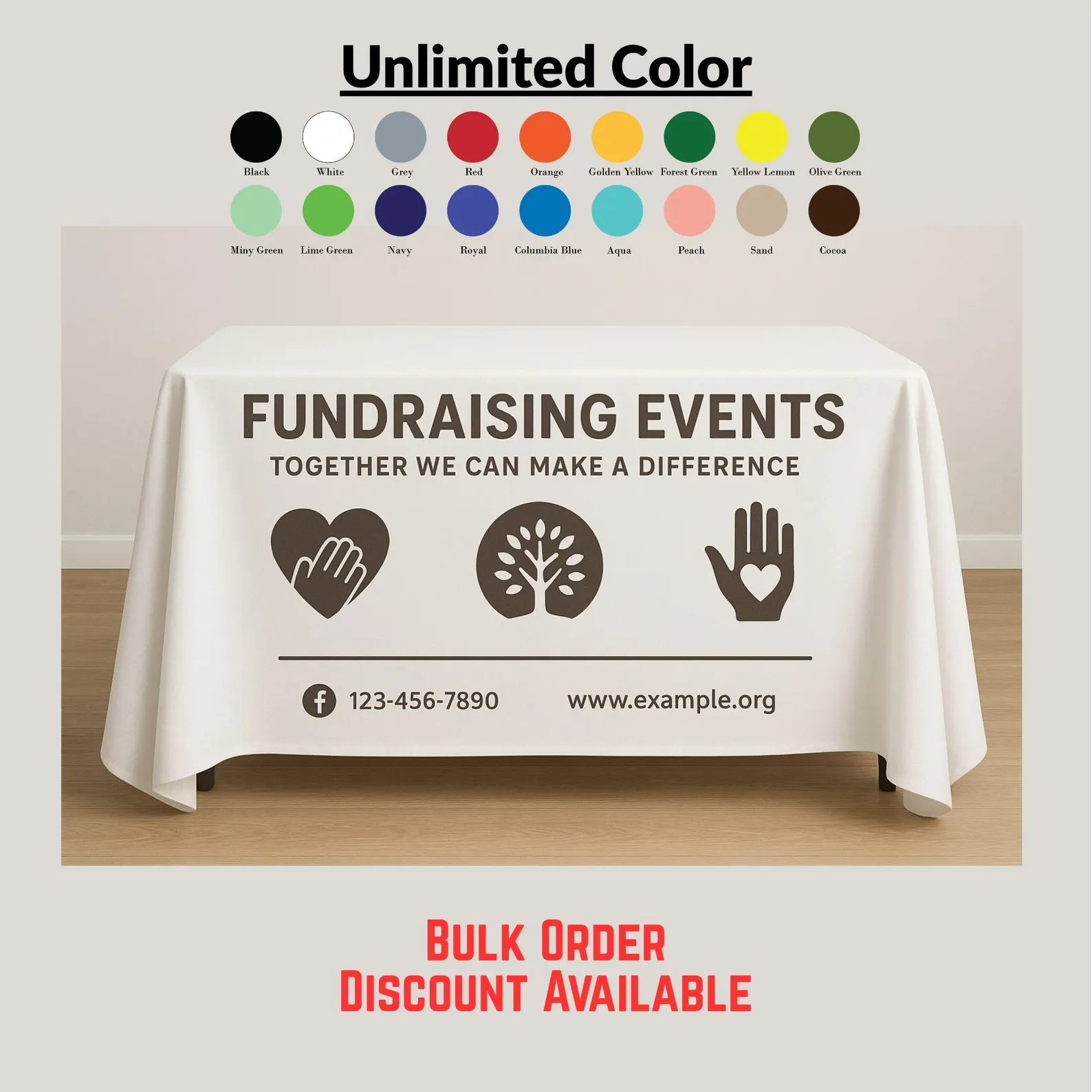 Custom Fundraising Table Throw – Personalized Event Table Cover with Logo & Slogan, Charity Display Cloth for Fundraisers & Nonprofit Events